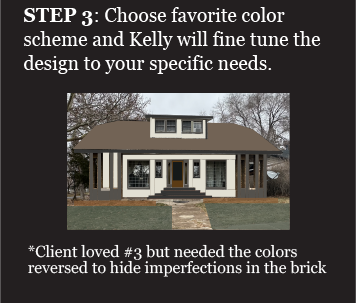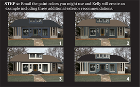 Investing in a new paint scheme for your home's exterior can have a significant impact on its value and curb appeal. If you're unsure about which colors to choose, don't worry about wasting time and money. With our virtual painted exterior service, you can reimagine your home and fall back in love with its current look. Kelly will create multiple paint palette options for you to choose from. Once you've made your selection, she will provide you with a detailed color chart that includes information on the paint manufacturer and the recommended paint sheens to complete the job. Say goodbye to a dated exterior and hello to a more modern and refreshed appearance with the power of paint.